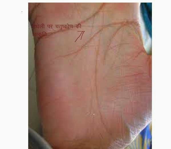 हथेली पर चतुष्कोण एक ऐसा निशान हैं जिसके होने से उस स्थान से संबधित शुभ फलों में वृद्धि ही होती हैं।